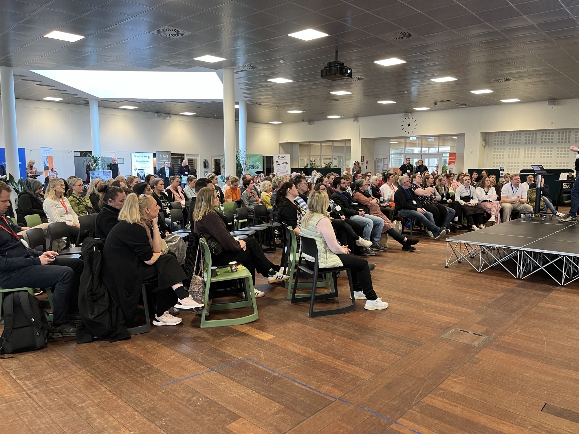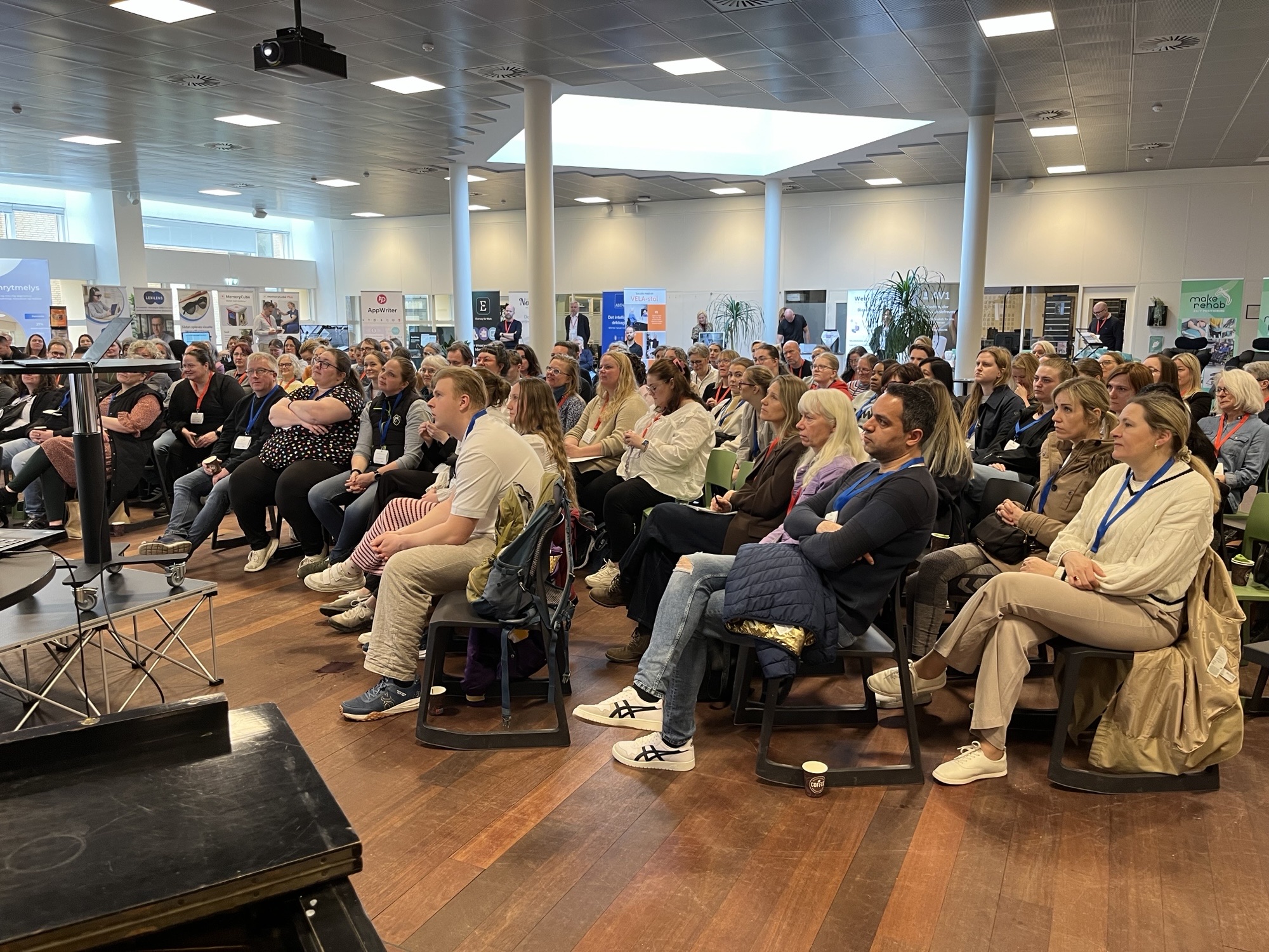 Ved siden af de i alt syv oplæg fra scenen kunne de mere end 170 deltagere også gå på opdagelse i temadagens Teknologibasar, hvor 13 virksomheder udstillede sine løsninger og stod klar til dialog – se et par skud fra dagen nedenfor.